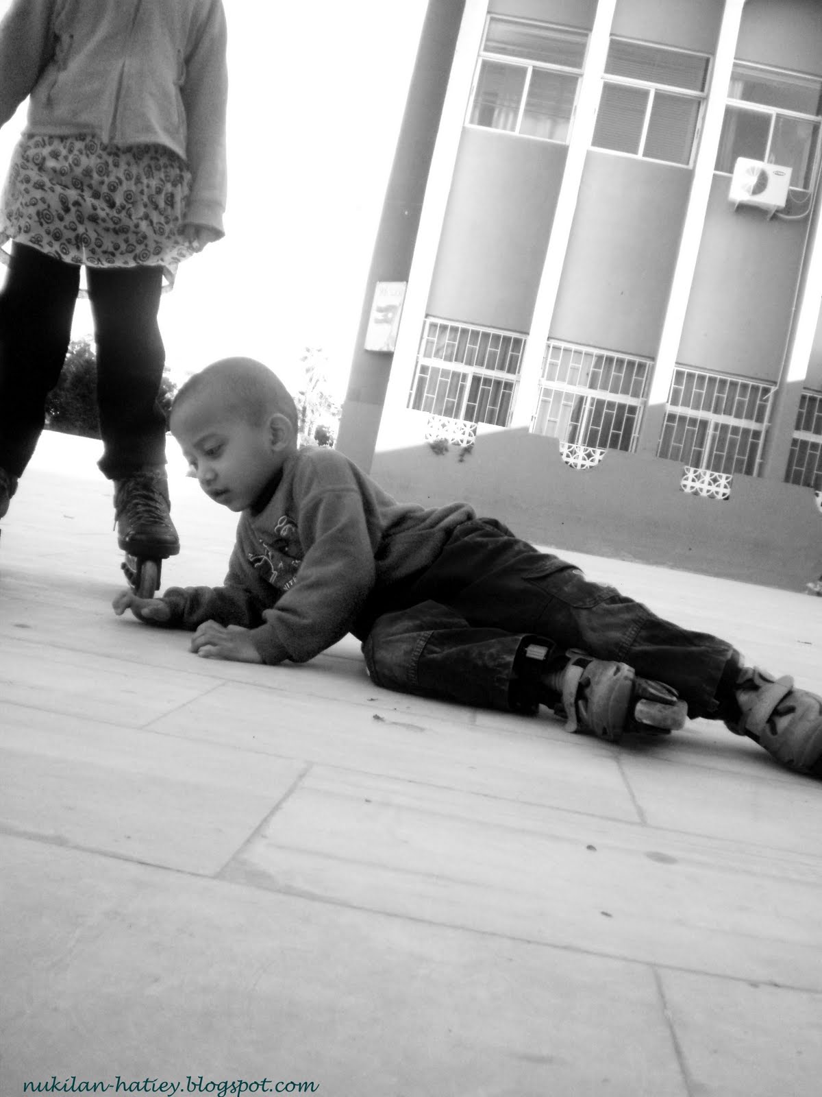 Sepanjang perjalanan balik ke rumah memakai roller bladenya.. |